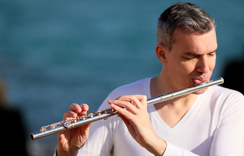 begun his musical training at the age of 14 and got his soloist diploma at the age of 19. He studied with Annamaria Morini in Bologna and Manuela Wiesler in Vienna. At the age of 22, he won in Darmstadt the coveted Kranichsteiner International Prize and started a very highly successful career as a solo flutist. His activity starts, as a logical prosecution of the Prize of Darmstadt, as an advocate of contemporary music: his fame has grown very fast and he quickly became the preferred interpreters of the many of the biggest living composers. Salvatore Sciarrino, György Kurtag, Doina Rotaru, Toshio Hosokawa, Ivan Fedele, Olga Neuwirth, Philippe Hurel, Wolfgang Rihm and many others wrote for him some beautiful soloflute works as well as new flute concertos, which contribute to wide the flute litterature. Some years later, his career turns back to the whole repertoire, without any distinction of styles and historical periods. An unique figure among the flutists of today, Mario is one of the very rare artists capable of passing from the most classical composition to the most extreme contemporary piece, witht the same vivd virtuosity, vibrant personality and rigorous both analytic and aesthetical approach.