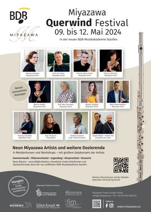 Die neue Akademie des Bundes Deutscher Blasmusikverbände e.V. (BDB) wird nicht nur auf Beton und Stein gebaut. Fundament für die Akademie sind auch fruchtbare Kooperationen. Eine solche hat der BDB nun neu mit dem Flötenhersteller Miyazawa Flutes Europe geschmiedet. Ziel ist es, Flötistinnen und Flötisten in der neuen BDB-Akademie im Rahmen einer Miyazawa-Academy Meisterkurse, Workshops und Basics anzubieten.